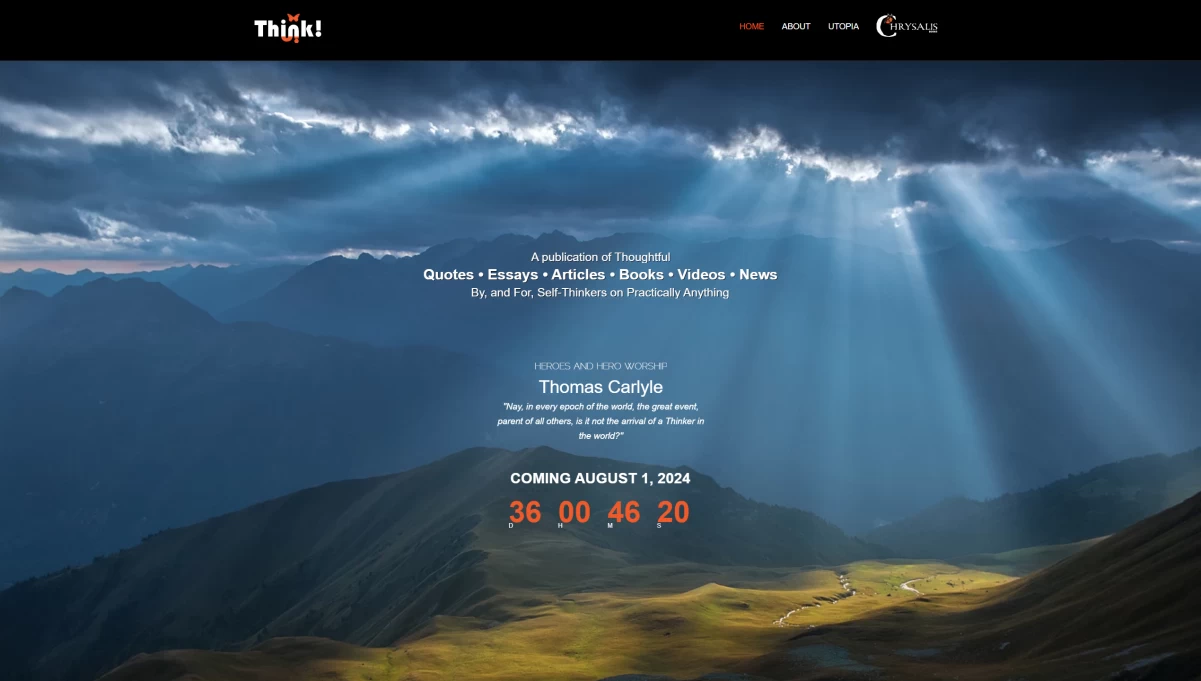 As an aside, I am launching my 'personal-ish' website - Think! (think.chrysalisbooks.ca) - where I plan to publish my thoughts. It's a publication of thoughtful quotes, essays, articles, books, videos, and news, by, and for, self-thinkers on practically anything. Maybe we will exchange some thoughts there. Besides essays, articles, news, and videos, all my books will eventually be available to read on Think!